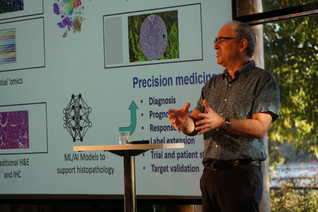 Leena Latonen from the Institute of Biomedicine, University of Eastern Finland, presented her group’s latest work on virtual staining using generative AI. With this technology, they can generate H&E-like images from unstained tissue sections, already achieving subcellular resolution.
