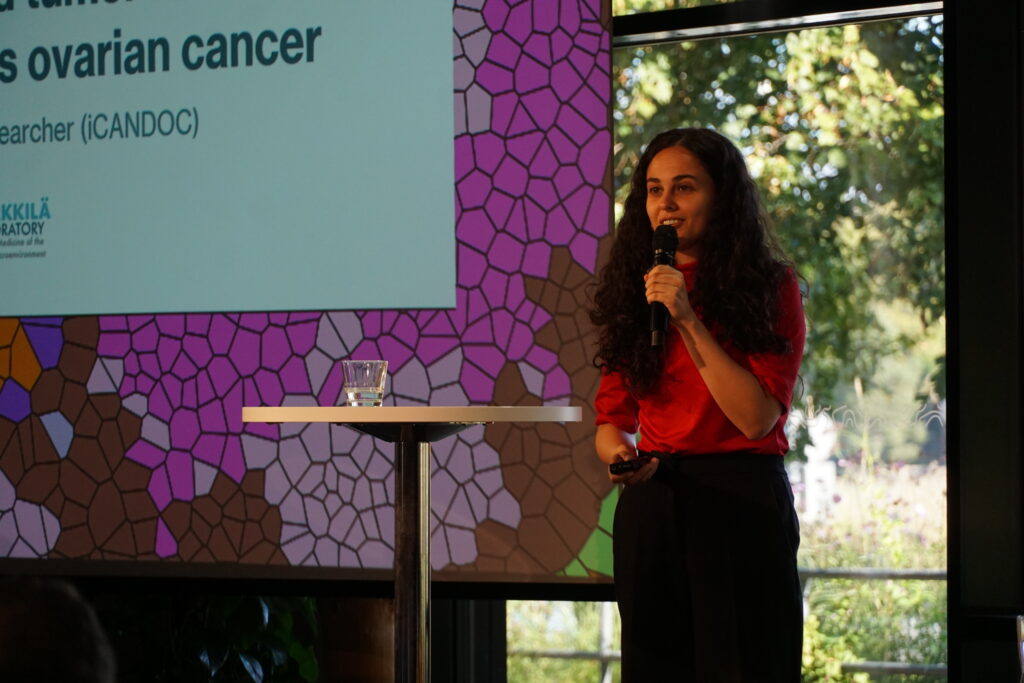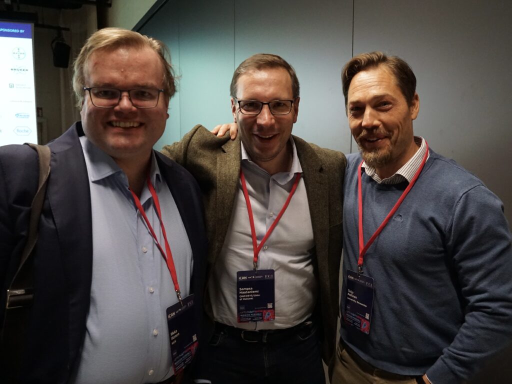 Best poster prizes were handed to Elisa Närvä (Mass Cytometry Approach for Quantitative Analysis of Stemness in Cancer), Amos Bonsdorff (Short fragment fraction of mononucleosomal cfDNA dynamically detects high-risk patients with large B-cell lymphoma), and Emma Viitala (High-resolution integrative analysis allows characterization and spatial annotation of normal and cancer-associated colon fibroblasts) after a careful evaluation by iCANPOD post-doctoral programme members. Congratulations to the winners – each at a different career stage!
