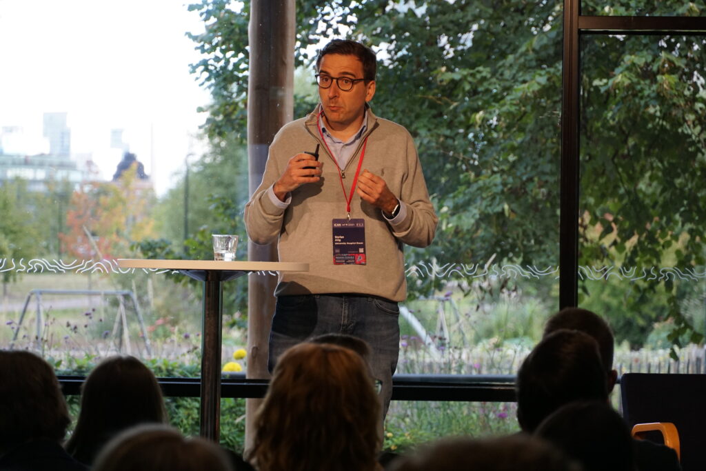 Lassi Paavolainen from the University of Helsinki presented his group’s work on using self-supervised machine learning to enable unbiased characterisation of cancer patients from multiplexed tissue microscopy images. They showed that in non-small cell lung cancer (NSCLC), the presence and spatial location of cancer-associated fibroblasts (CAFs)—whether in the tumour centre or adjacent areas—are associated with patient prognosis.