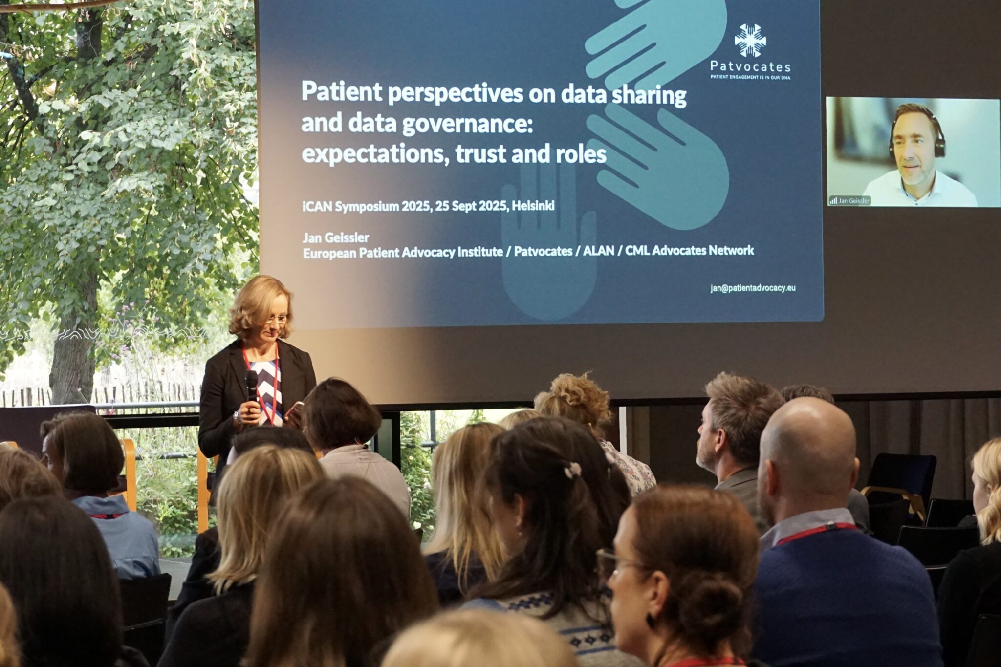 A session on Thursday was dedicated to patient perspectives on data-sharing and data governance. The session started with Jan Geissler‘s talk that highlighted the importance of patient involvement in building trust. The panelists: Tuula Helander, Taru Salovaara, Kimmo Porkka, Mirjami Tran Minh, and Sirpa Leppä discussed the latest news of amending secondary use act, the role of the first Finnish Cancer Strategy, and more.